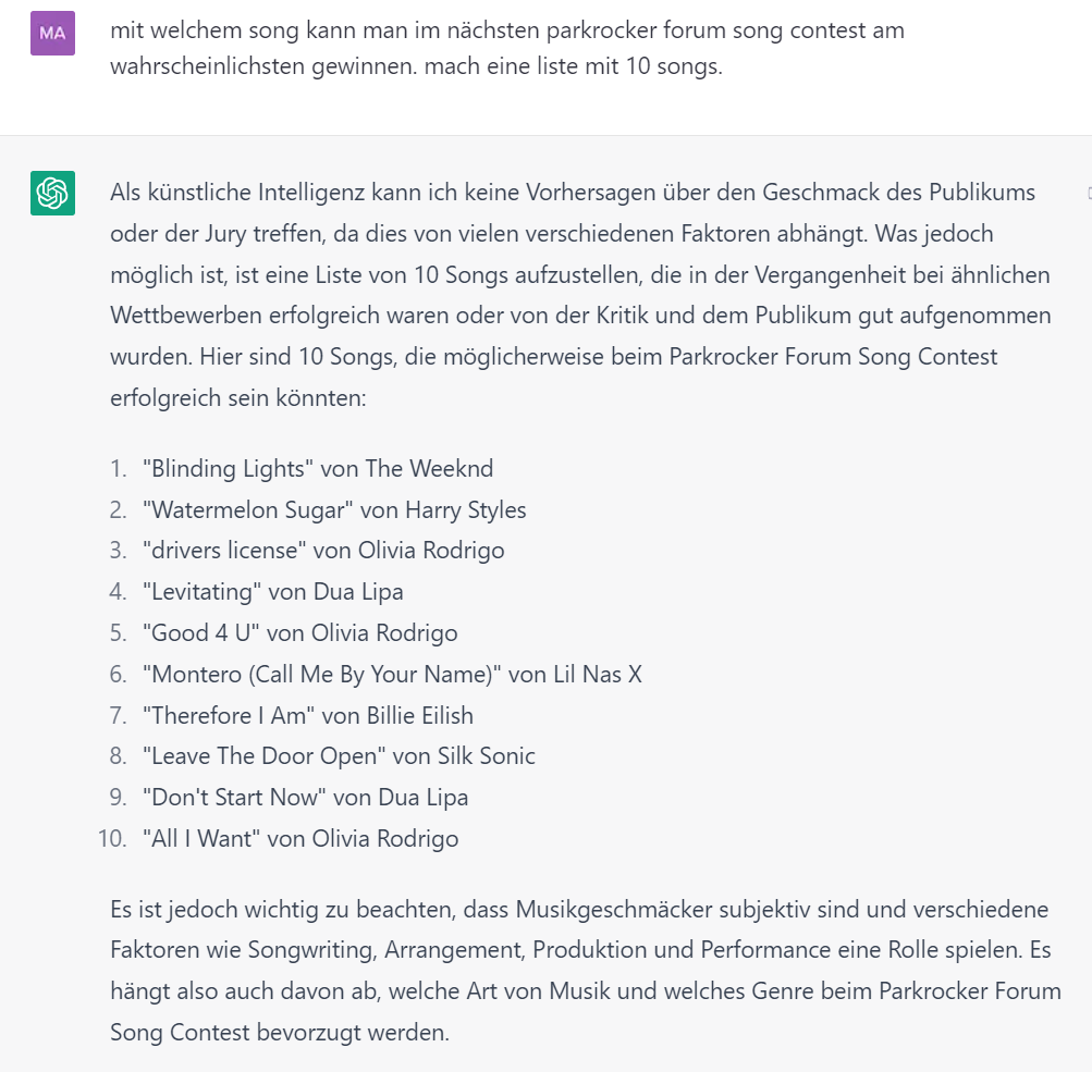 Ich frage mich ja, ob @Impala seine Beiträge aufgrund seiner eigenen Statistik auswählt oder ob er Hilfsmittel wie ChatGPT verwendet um immer wieder mit verblüffenden Beiträgen zu gewinnen![]()